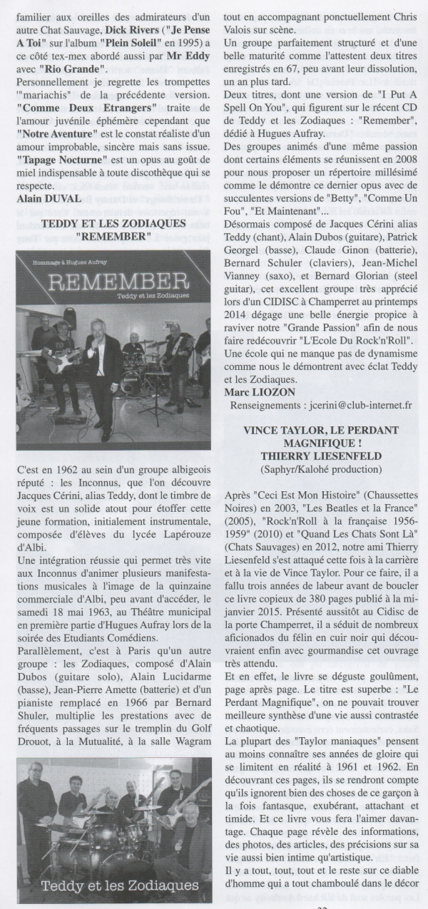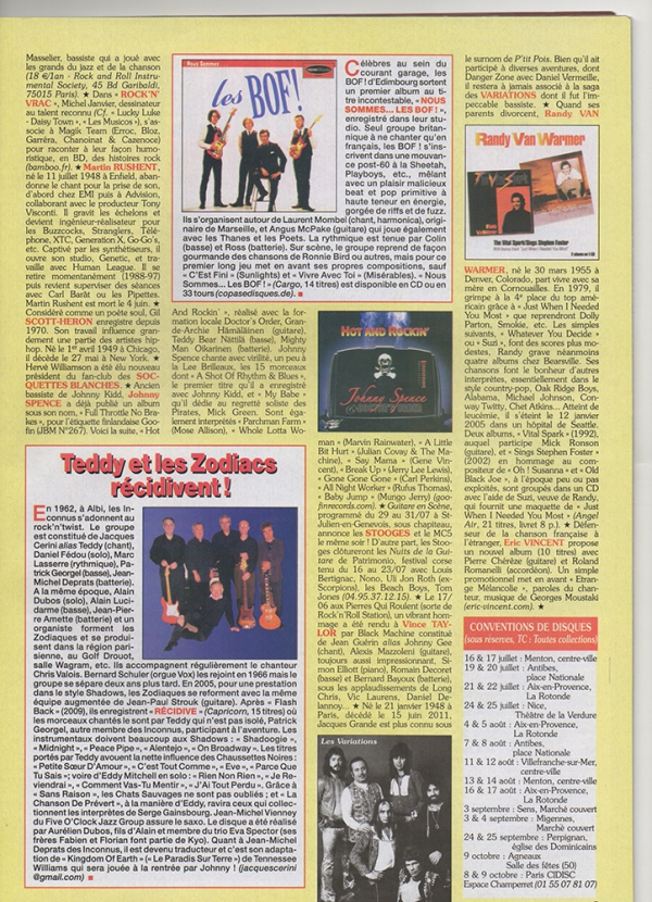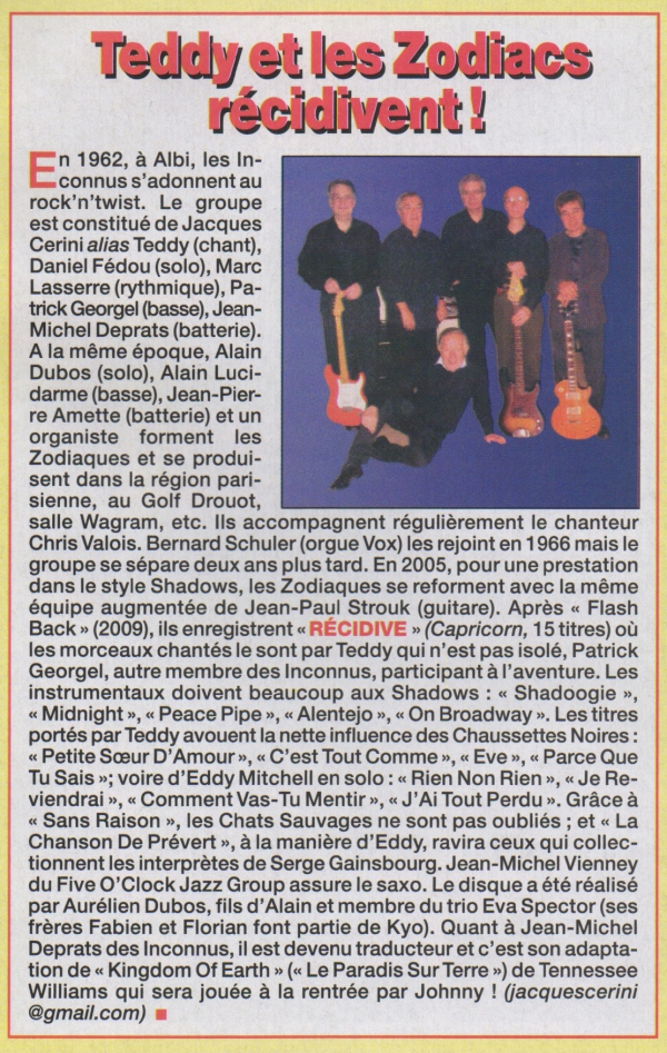 JUKEBOX MAGAZINE d'août 2011 a assuré une bonne promotion du second album de Teddy et les Zodiaques « Récidive ».